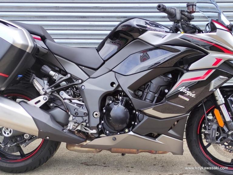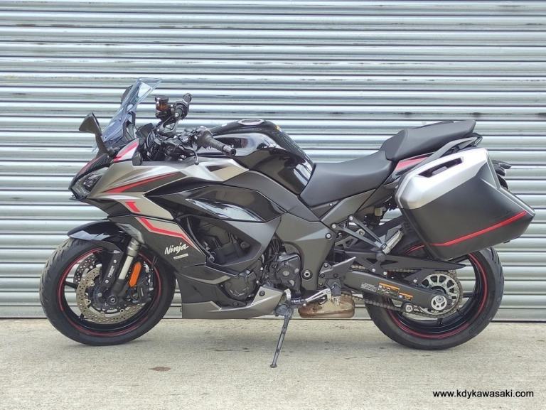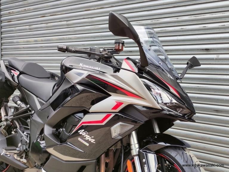 The Ninja 1000SX is THE sports tourer to have. Cruise control, different rider modes, quickshifter up and down, bluetooth connectivity and traction control are many of the standard features. This bike has had Kawasaki colour coded panniers added as an option.