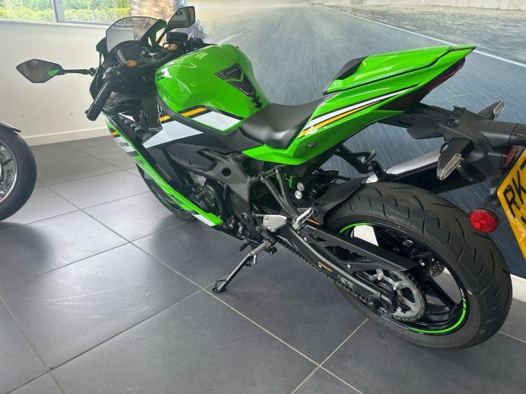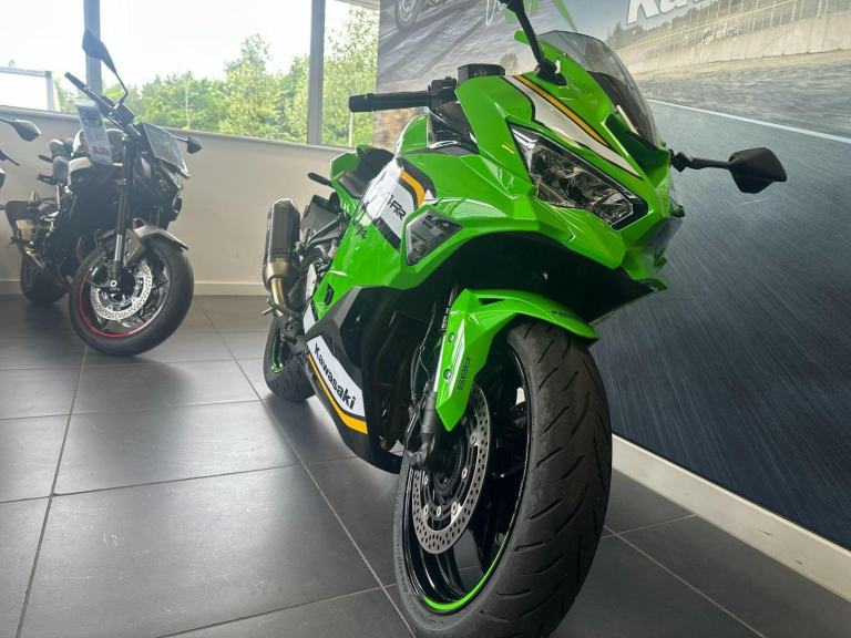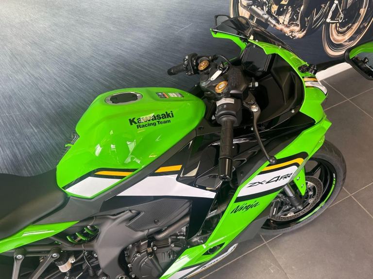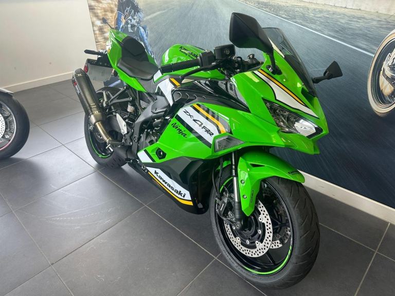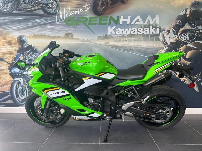 Green, Into a category filled with 400cc sport models, Kawasaki introduces a revolutionary Supersportmodel. The Ninja ZX-4RR mounts a 400cc In-Line Four engine with class-leadingperformance in a compact chassis. On the track or on the street, experiencing theexhilaration of the Ninja ZX-4RR?s unprecedented power, thrilling high-rpmwail, and its sharp, nimble handing will surely awaken the dormantSupersport within you. The Ninja ZX-4RR Performance comes with asmoke windscreen, a gel tank pad, a screen protector, acolour coded seat cover plus the sporty sound andextra performance of a Carbon Akrapovicslip-on exhaust.This is our ex demonstrator ZX-4RR Performance in great condition throughout and supplied with the original Kawasaki pack, 2 keys and all original handbooks etc.Serviced at 434 miles and supplied with the balance of the 4 year Kawasaki warranty until October 2028., 0 owners, 2 keys, ABS, Belly Pan, LED Indicators, Screen, Seat Cowl, Carbon Exhaust, Traction Control