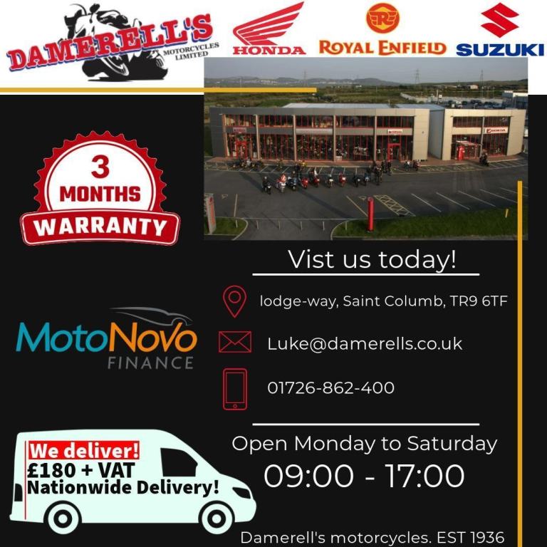 Honda and Royal Enfield dealers.All of our vehicles will come with at least 6 months MOT + be serviced if required.Nationwide delivery from £225