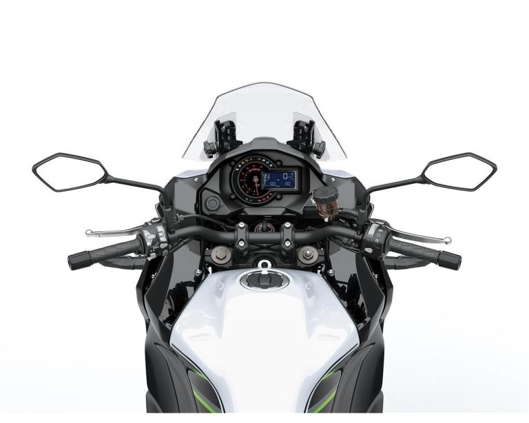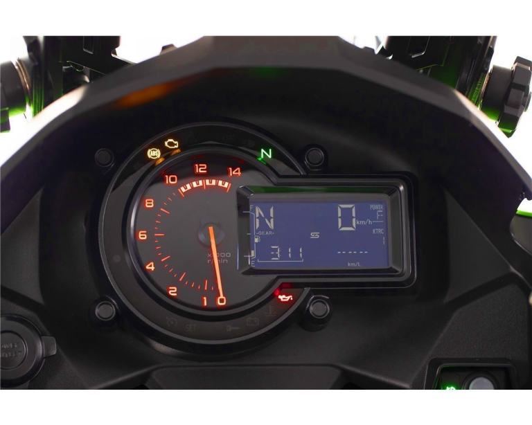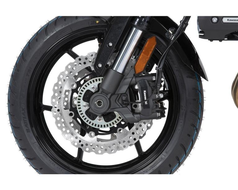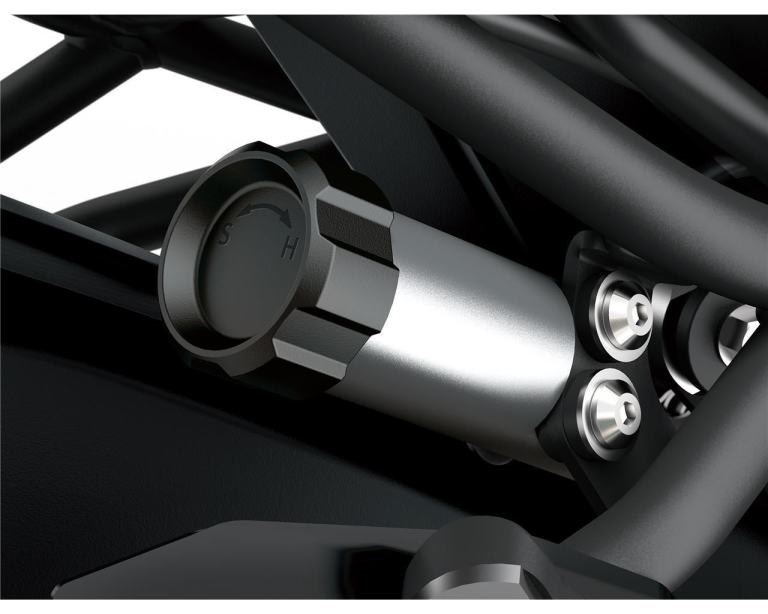 An increase in displacement from 1,043 cm3 to 1,099 cm3 gives the Versys 1100’s engine a boost in power from 120 PS to 135 PS. The more robust mid-range and increased high-rpm power contribute to increased comfort when cruising on the highway, facilitating long-distance touring. The climb from low through high rpm is even more exhilarating, while superb throttle response, strong torque at all rpm, and a seductive intake howl further contribute to riding excitement.