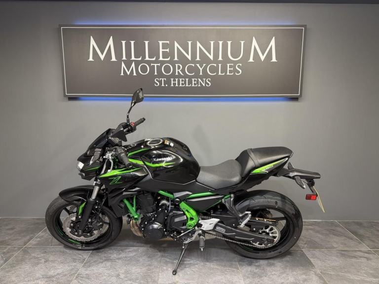 Z650 DEMO with only 67 miles. This bike will come with the balance of Kawasaki's 4 year warranty. Choose Millennium Motorcycles for your next bike. Buy with confidence from the North West’s leading Multi-franchise dealership. Your new bike will be inspected by one of our trained technicians. Part Exchange Welcome, Finance available and Nationwide delivery. WhatsApp on [Phone number removed]or call 01744 616161. Reserve or buy online at [Website URL removed] Come pay us a visit with our amazing clothing and accessories department and on site café.
