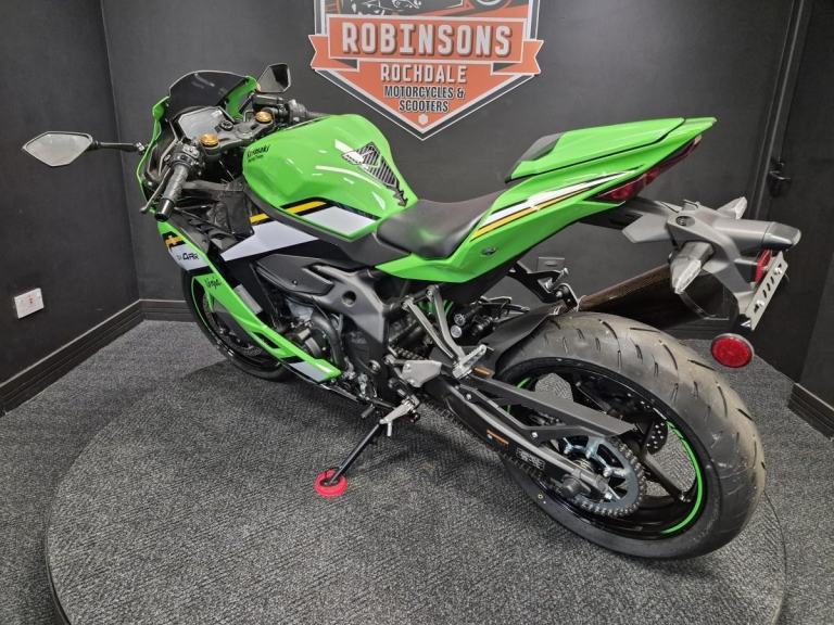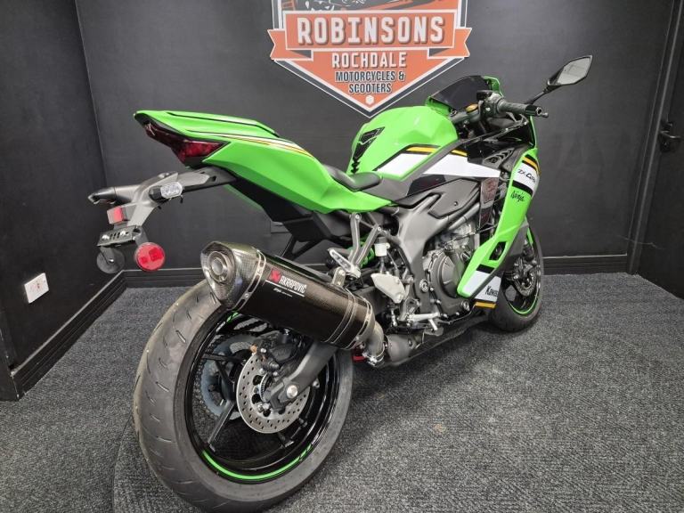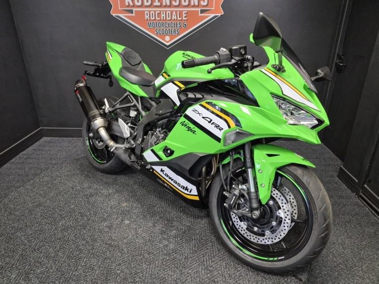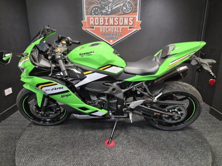 2025 Kawasaki ZX4 R Performance Edition. Huge saving on RRP. Kawasaki introduces a revolutionary Supersport model. The Ninja ZX-4RR mounts a 400cc In-Line Four engine with class-leading performance in a compact chassis. On the track or on the street, experiencing the exhilaration of the Ninja ZX-4RR’s unprecedented power, thrilling high-rpm wail, and its sharp, nimble handing will surely awaken the dormant supersport within you. If it’s a new or used Motorcycle or Scooter you are after then look no further, Robinsons can make your dream come true, Nationwide delivery, Extended warranty, On site clothing, Parts and accessories department on site and a good coffee machine so pick up the phone or pop down to see us 7 days a week. Call 01706 716650 or WhatsApp 01706 716650. Email [Email address removed. Click Email button to contact us.]
