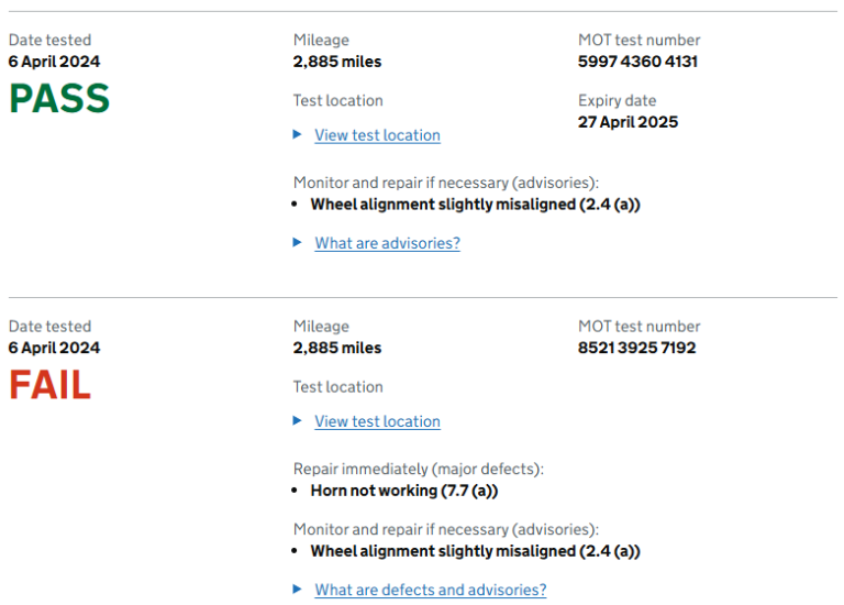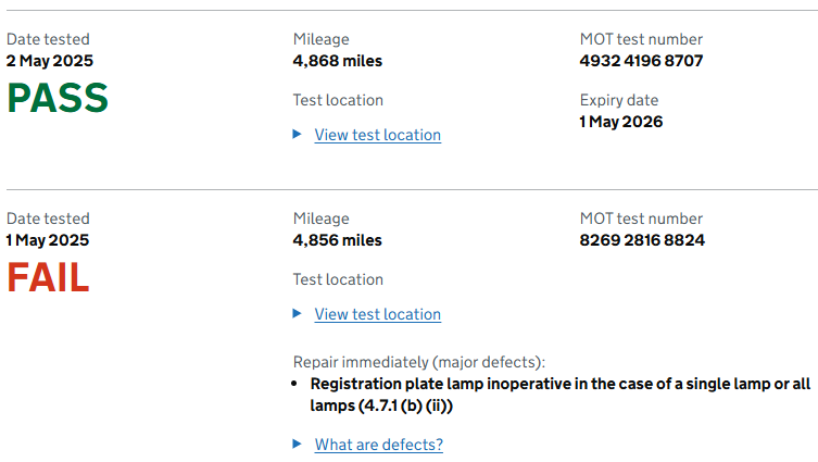 • Logbook (V5C) in my name, though I am waiting for the new one to arrive (due to registration plate change).