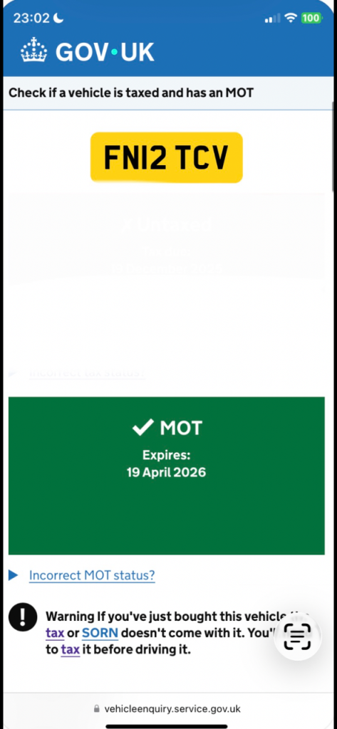 This vehicle has not been reported stolen, scrapped, exported or flagged as unroadworthy.
