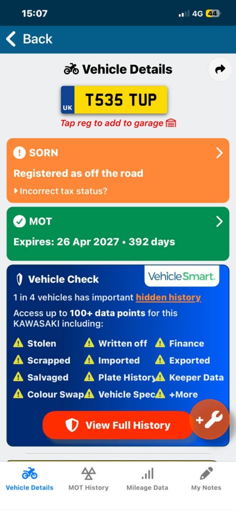This vehicle has not been reported stolen, scrapped, exported or flagged as unroadworthy.