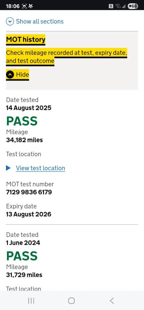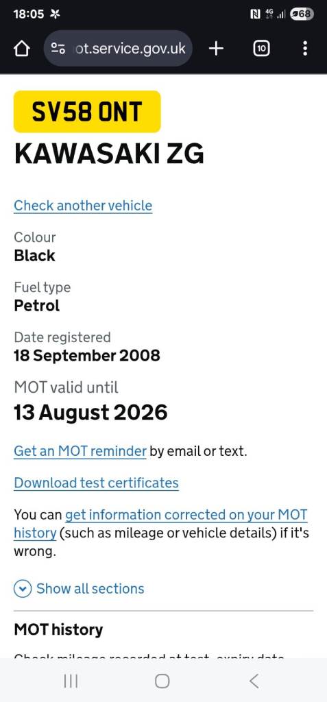 The bike has a fresh 12 month MOT with no advisories(tested 14.08.25). 38,182 miles on clock but this will go up slightly weekly as is still used.