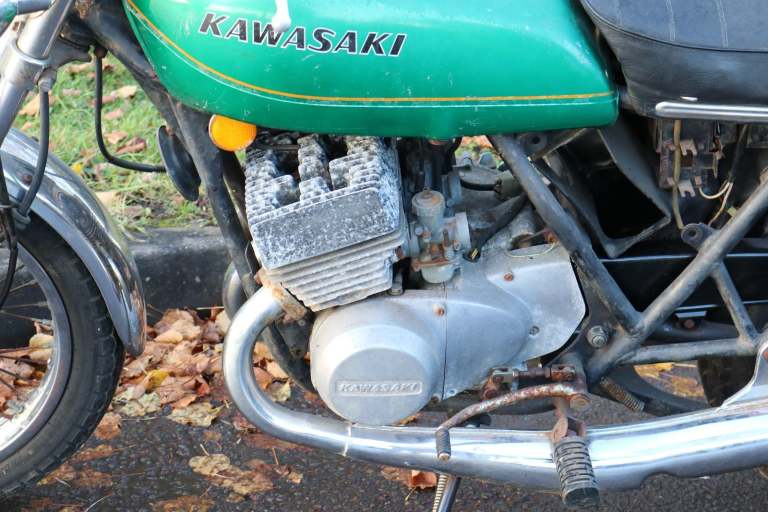 If you are reading this advert, the motorcycle is STILL for sale. Fresh in from Canada, a 1976 Kawasaki KH400. Mileage of 20699 is believed genuine. Engine does not turn over. Be quick on this one, this is sensibly priced and won't be here long.