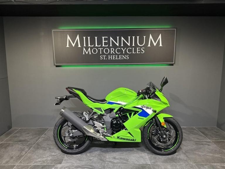 RETURNING IN STYLE. KAWASAKI NINJA 125. After a year break the popular Ninja 125 returns. Order from Millennium Motorcycles and take advantage of our discounted CBT OFFER. The CBT friendly Ninja 125 is not simply the first step on the Ninja road it also displays Kawasaki trademark engineering quality from the Ninja H2 trellis style frame to the sleek Kawasaki Racing Team inspired bodywork. With its responsive 15HP engine tuned for low to mid-range flexibility plus characteristic Ninja top end thrills, the Ninja 125 is a great way to say hello to Kawasaki and start enjoying the thrills of motorcycling. Choose Millennium Motorcycles for your next bike. Buy with confidence from the North West’s leading Multi-franchise dealership. Your new bike will be inspected by one of our trained technicians. Part Exchange Welcome, Finance available and Nationwide delivery. WhatsApp on [Phone number removed]or call 01744 616161. Reserve or buy online at [Website URL removed] Come pay us a visit with our amazing clothing and accessories department and on site café.