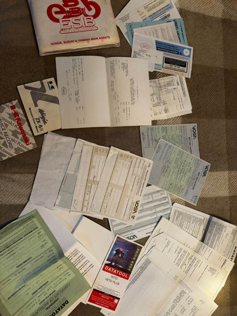 Some upgrades, including Fireblade brake conversion with master cylinder, has some other new parts and improvements including coil packs, spark plugs, adjustable levers, double bubble screen, new fuel lines, headers with a sports can (have the original) and recent oil and filter change. The bike comes with lots of paperwork and history. it’s a solid base with lots of potential for someone who wants a usable classic 90s sports bike to finish to their own standard.
