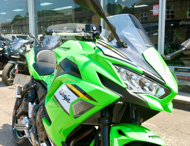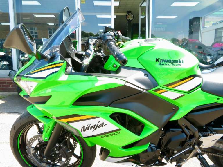 For sale here we present a 2025 Kawasaki Ninja 650 in Lime Green. The bike has covered 322 miles from new and is totally standard. 3 years 0% APR finance available. Kawasaki warranty remaining until March 2029! Abs, traction control, riding modes, TFT display and LED lighting are standard on this model. Part exchange and nationwide delivery are available. Secure this stunning Ninja 650 today with a £99 deposit. If you would like any further information, please do not hesitate to contact our sales team.