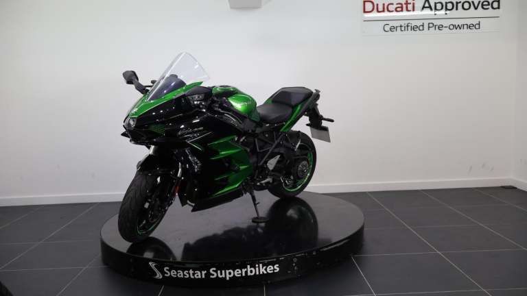 Here at Seastar we are pleased to offer this stunning supercharged Kawasaki Ninja H2 SX SE Tourer. Being the top spec SE, this bike boasts radar, cruise control, and electronic Skyhook suspension. On top of the already impressive standard trim, being the tourer this bike also comes with colour coded panniers making a great all round package.