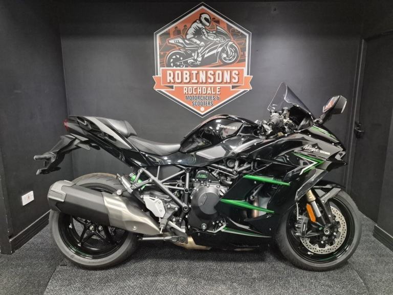 Ninja H2SX Great saving . Upgrade options available Performance, Performance tourer or tourer. The new Kawasaki Ninja H2 SX is Kawasaki's most advanced Sports Tourer ever; the ultimate integration of the highest standards of technology, performance and riding comfort. New dedicated features like the ARAS system provide real world benefits, including adaptive cruise control and blind spot detection. Integrated into the new 6.5” colour TFT instrumentation is Kawasaki's SPIN Infotainment system. Experience the exhilaration of the unique balanced supercharged engine for both long distance touring and daily riding. The best technology is that which becomes a natural extension of ourselves and sets us free. Please call us at Robinsons of Rochdale on 01706 716650 today for more information, or WhatsApp us on 01706716650 today for more pictures/videos. Part exchange is a pleasure.