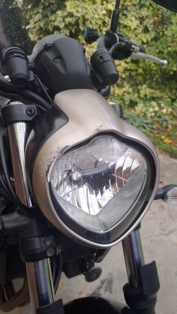 Not insured at the time, so no claim history. Frame and engine and everything still absolutely A-OK, but cosmetic scrapes where they laid it down at low-speed running from the police. Prior to this, passed every MOT and service with flying colours, never a single complaint or issue with her, mechanically. FSH. New battery and tyres are the only things she's needed since 2016.