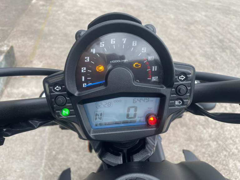 This bike has a radiator guard, custom mirrors, comfort seat and R&G tail tidy fitted to it. It has been serviced at 592 and 6416 miles and comes with an MOT until May 2026.