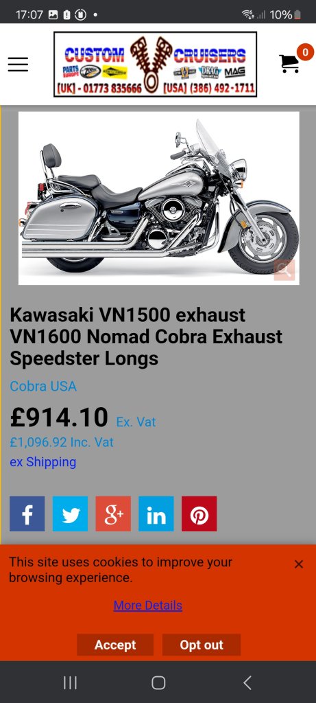 Cobra exhaust on the bike
