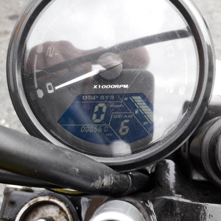 New speedo shows the 570 miles done since new rings fitted. Check with the dvla for previous Mot history and mileage. The 24000 is a guess.