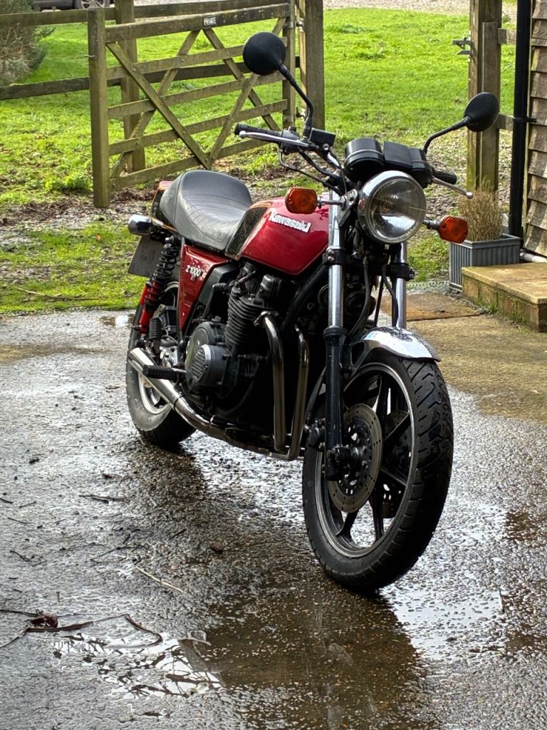 Here we have for sale a Kawasaki Z250 as a project bike in overall good condition. This bike started on a jump pack initially, then ran on its own fuel, it runs well. The throttle will need attention and as shown in the pictures, the end can is very corroded. The tyres are fairly good, the electrics are functional bar the rear master cylinder being seized. The MOT expired 27/11/2023. We have the V5, 3 keys inc. red master, maintenace receipts, Owner's manual and service book with 11 stamps.