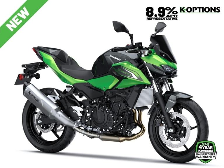 The new 2026 Z500 available in 3 colours and Two editions. The colours are Metallic Matte Graphenesteel Gray/Metallic Flat Spark Black, Candy Lime Green /Metallic Carbon Gray or Ebony /Metallic Carbon Gray. You can upgrade to a performance edition for £800. Some images show performance upgrade.
