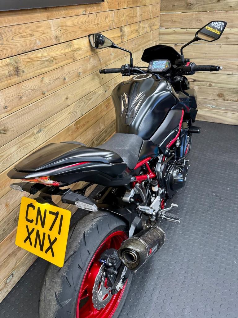 This highly sought after Z900 was bought new on 17th September 2021 and has never changed hands. The service schedule is completely up to date and it has a mot until mid-September. As standard, the OEM exhaust was removed by the dealer and an Akropovic fitted from day one. The rear seat cowl and tail tidy further complement this beautiful machine! All OEM parts are included in the sale.
