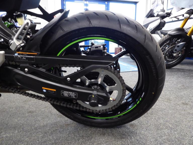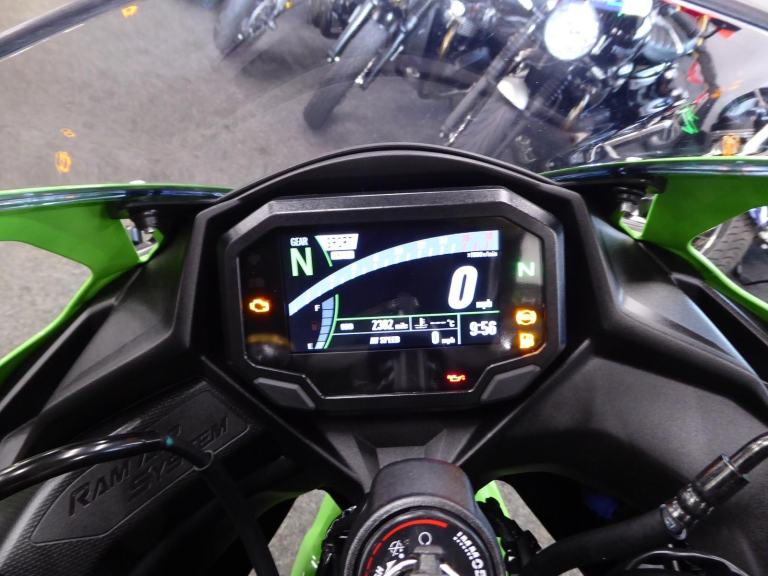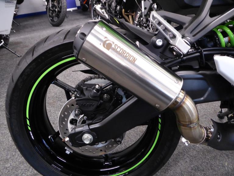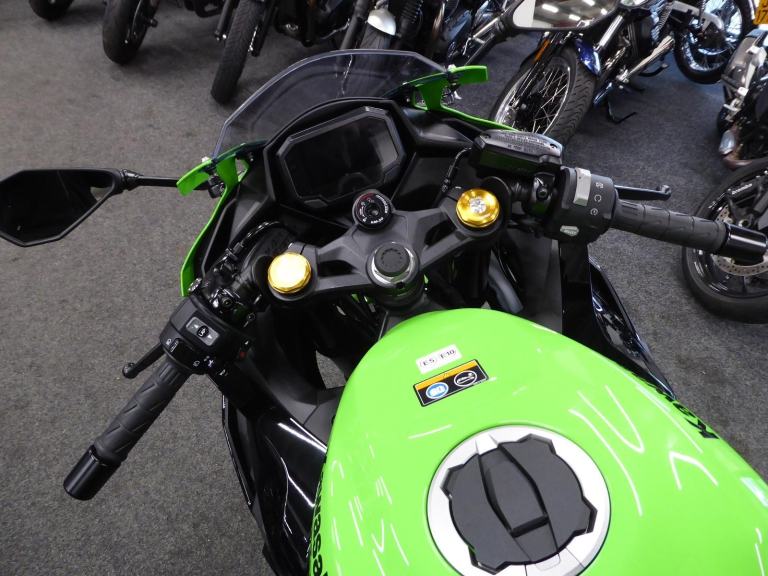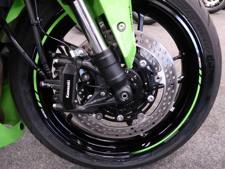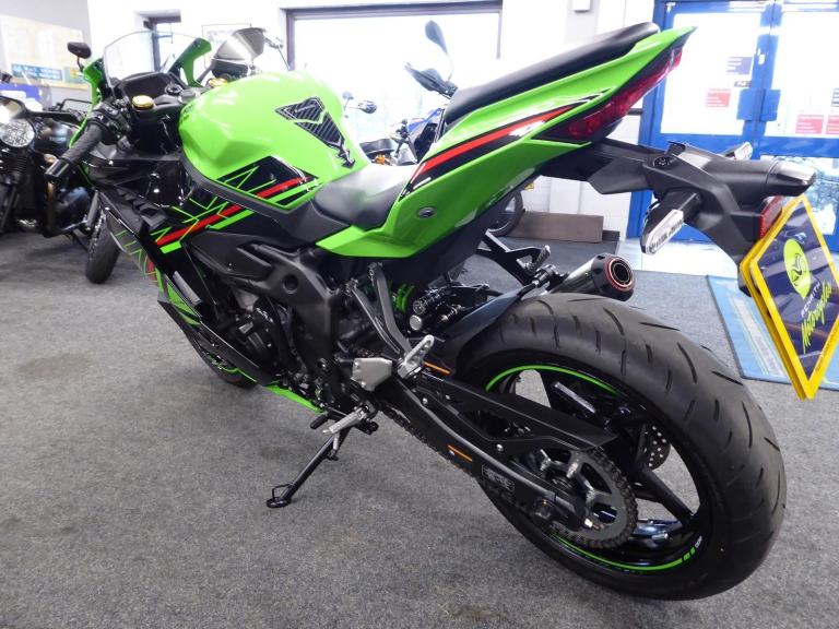 The ZX4 RR is a nod to the late 80's and early 90's when the streets were awash with 400cc mini superbikes screaming to their 16,000 rpm red line. Every manufacturer produced them and they all came to these shores as grey imports - apart from Kawasaki's officially imported ZXR 400. Move on 30 years and we have its latest incarnation the ZX4 RR, with Kawasaki still being the only manufacturer to offer this superb lightweight class of machine. Featuring ABS, traction control, adjustable Showa suspension front and rear plus four rider modes - Sport, Road, Rain along with User defined, an up / down Quickshifter and the Kawasaki ram air system that releases the bikes 80 horses, all making the ZX4 RR a worthy successor to the original for todays roads even though it may have lost its hoover pipes., This fantastic 2,382 mile example fitted with a Scorpion Red Power slip on can has just been given a service by ourselves, comes with both keys, owners manual, Datatag and is just waiting for spring - which won't be long now. Green, 2 owners, HPI checked and clear. Delivery from only 180 Pounds inc VAT