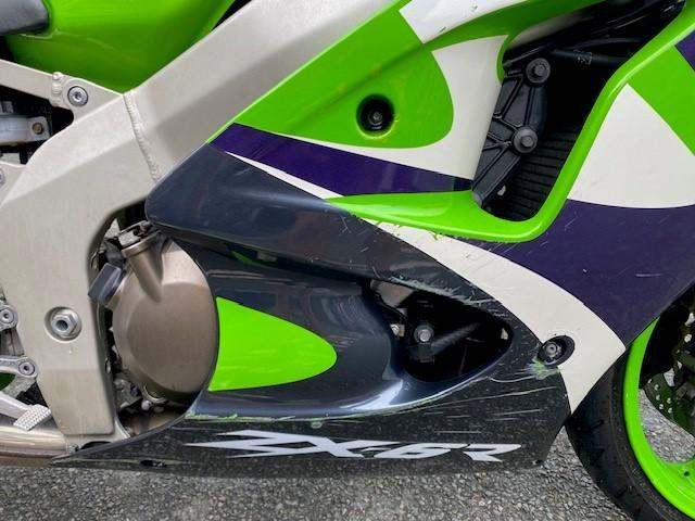 Damage/scratches to fairing panels, peeling paint on wheels/swingarm.