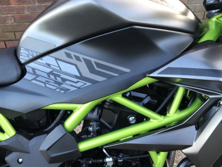 This immaculate bike was supplied new by us to our KRTS partners. It has been well maintained and has had its first service carried out at 836 miles. It comes complete with owners document pack, handbook, history key, datatag security and both original keys. It is still under manufacturers warranty until 25-03-2029. Finished in A matt denim grey with Cool green graphics.