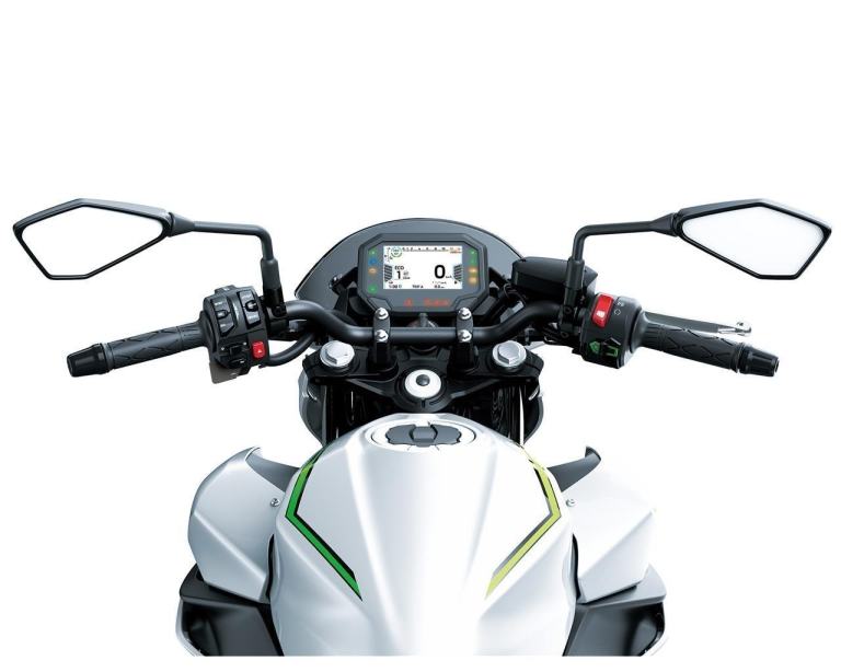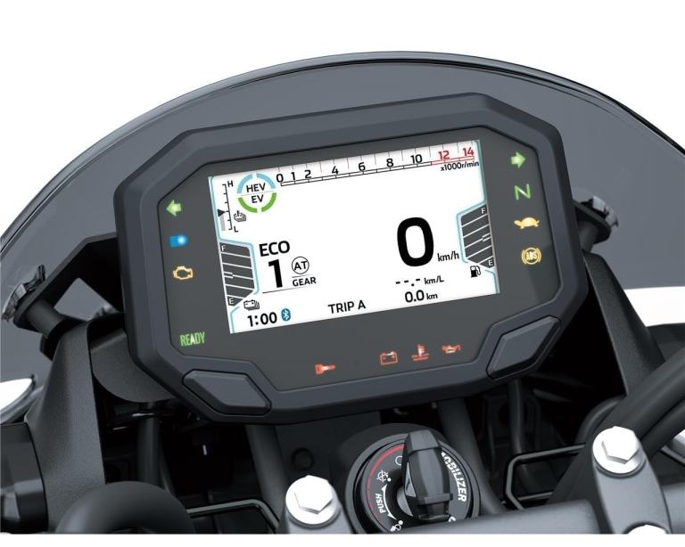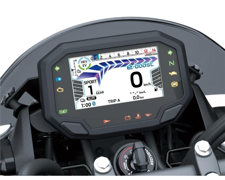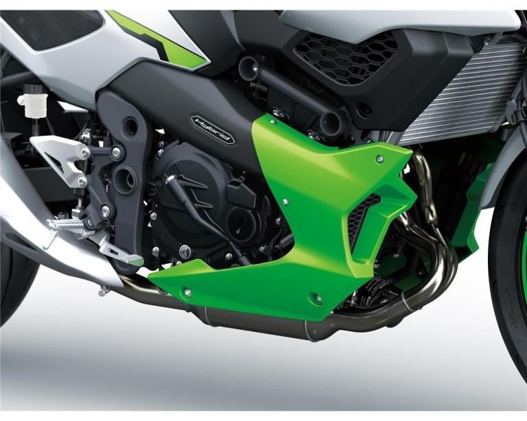 In addition to increasing overall output to that of a 650cc-class machine, with e-boost activated the Ninja 7 Hybrid can initially out-accelerate a Ninja ZX-10R from a standing start under certain conditions.