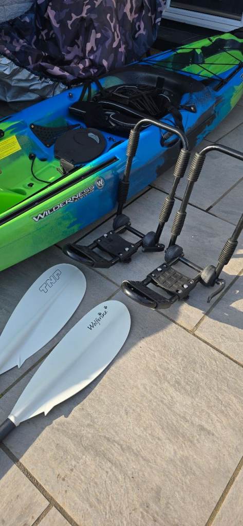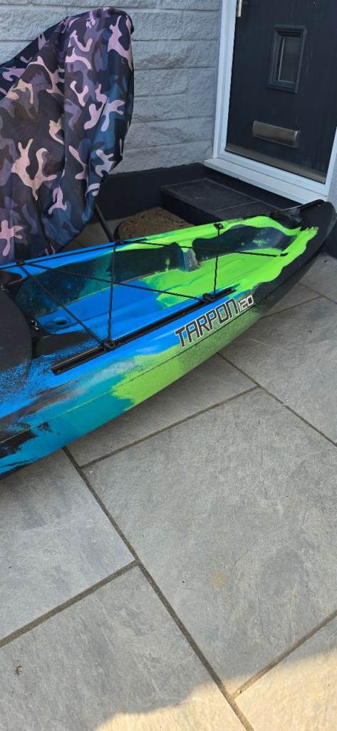 Wilderness systems tarpon 120 12 foot kayak. Only used 3 times is basically brand new. Comes complete with TNP Wolferine glass 2pc VARIO paddle, roof rack J bars and a brand new trolley and waterproof cover. Kayak has been covered whilst stored.