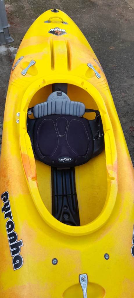 A used Pyranha Burn kayak. Medium. Popular craft.Adj backrest, adj footrest, note thigh grip missing but ether foam block provide to shape your own. Plasitc weld in hull as shown. A sound craft still being used till point of sale. Collect from Heath Cardiff. spraydeck and paddles sold seperately as there is a choice.