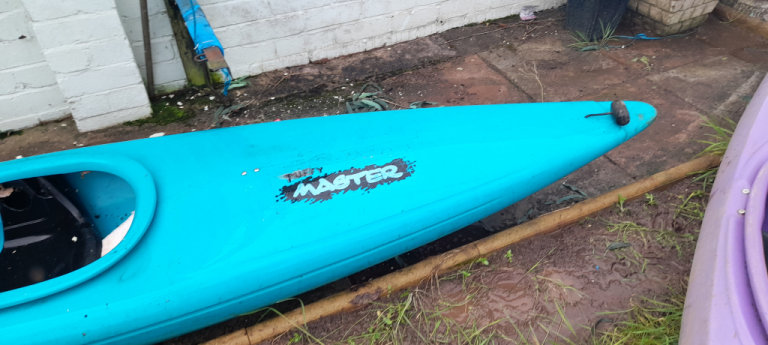 A used in vgc PlasticTuffy master kayak with paddle, helmet and spraydeck. A roomy cockpit. An ideal beginners intermediate paddlers craft for flat rivers water, lakes and calm seas. Takes up to 14 stone. Collect from heath cardiff