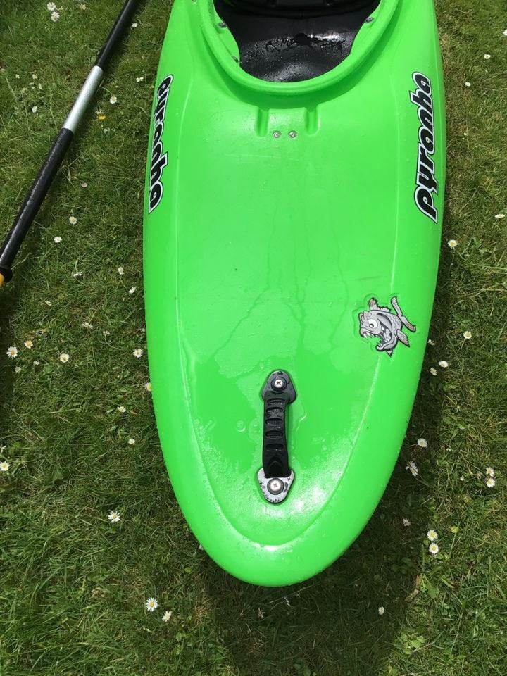 Pyranha Rebel kayak Kids child with paddle and life jacket, hardly used, excellent condition, always stored indoors and has never been used on a river or white water. Paddler weight up to 50kg, Cash on collection from Kirkintilloch, near Glasgow, £425 also have a spray deck to include with the sale , not in picture.