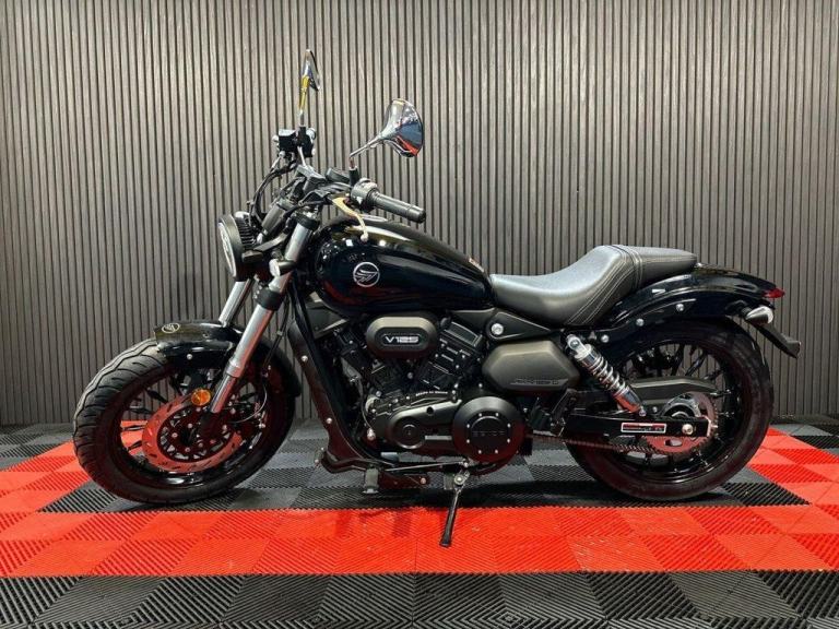 NATIONWIDER DELIVERY, FINANCE AVAILABLE APPLY ONLINE The Keeway RK V125C modernizes the classic V-twin cruiser with a stylish design and contemporary features. Powered by a 125cc V-twin engine with 6 valves, liquid cooling, and electronic fuel injection, it delivers 10.2 kW of power and 14.4 Nm of torque, weighing in at 164 kg (dry).Equipped with inverted front forks and front and rear disc brakes, the RK V125C ensures exceptional handling. It features thick 120-80-17 and 140-70-17 tires for a stable ride, while the 2-into-1 exhaust showcases the polished engine case with a distinctive rumble. The motorcycle boasts a 19-liter fuel tank for extended range and a low 690mm seat height for rider comfort.Modern electronics include a round headlight with a 3D effect and a digital instrument cluster featuring a radial tachometer. Available in solid red or black, the RK V125C is an ideal choice for riders seeking a blend of classic style and modern performance for their open-road adventures. Need finance? We#039;re here to help! We are Finance Experts, APPLY ONLINE NOW AT OUR WEBSITE! HP or PCP, we#039;ve options to suit your circumstances*