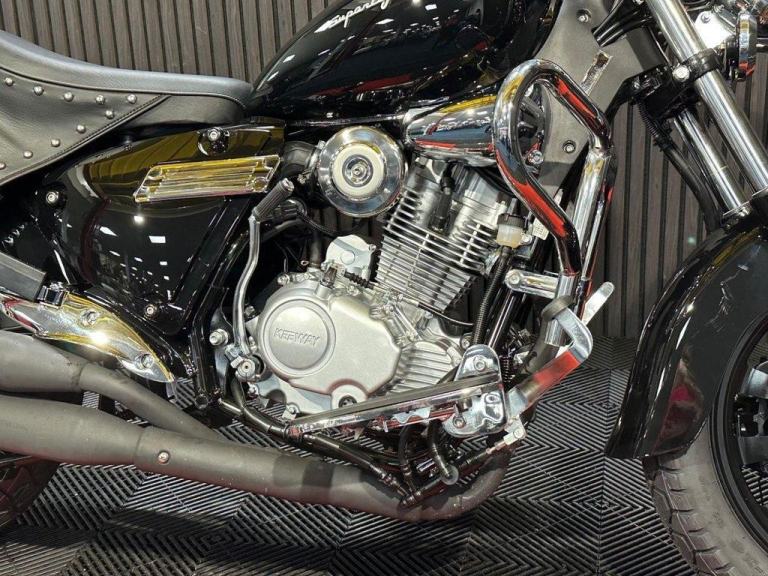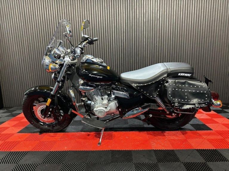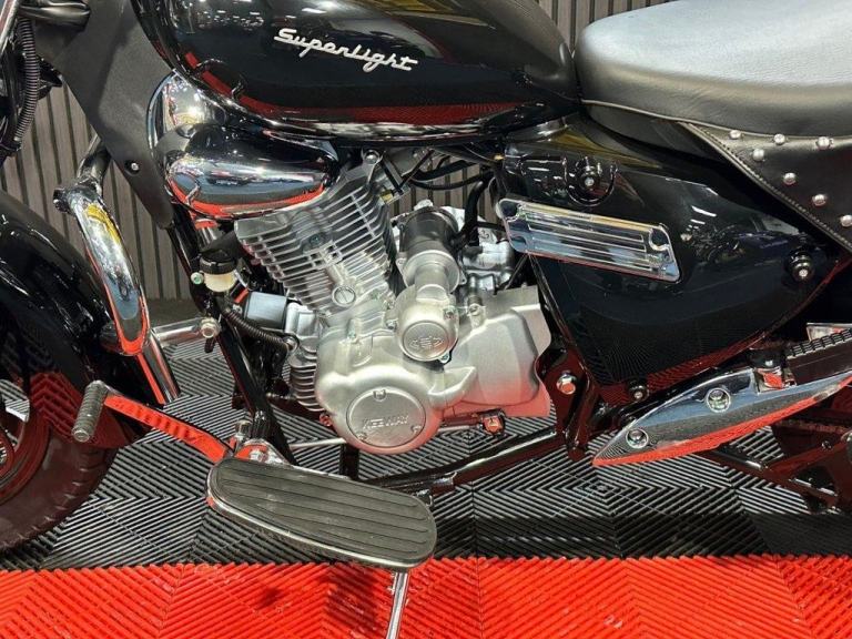 The Keeway Superlight 125 is a classic cruiser powered by a 125cc air-cooled, single-cylinder engine generating 9.5 kW (12.5 hp) and 9.5 Nm of torque. It features a 5-speed manual transmission, a steel double-cradle frame, and telescopic front forks with 130 mm travel. Braking is managed by a 280mm front disc and a 240mm rear disc, enhanced by a Combined Braking System (CBS). With a low seat height of 740 mm and a 14-liter fuel tank, it offers a comfortable ride. Need finance? We#039;re here to help! We are Finance Experts, APPLY ONLINE NOW AT OUR WEBSITE! HP or PCP, we#039;ve options to suit your circumstances*