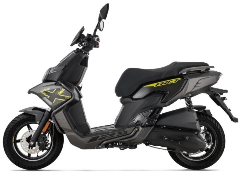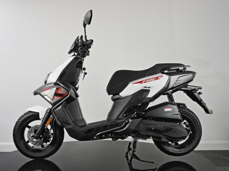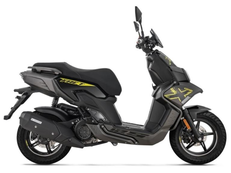 Keeway Fact X 125 takes the concept of a light, edgy scooter with good handling to the next level with its future-thinking styling. Designed to be the ultimate daily driver, this scooter is perfect for anyone looking for a reliable and stylish mode of transportation. Its modern 4-stroke engine delivers easy power on tap while still keeping fuel efficiency in mind for no-frills everyday riding, and the automatic CVT provides a smooth and seamless ride, making it easy to navigate through busy city streets. A tough rugged image is portrayed by the adventure bikes styling and exposed framework. Additionally, the scooter is equipped with a powerful front disc brake, providing excellent stopping power in any situation. The multi-sided LED headlights and taillights give the scooter a wide visual look and enhance visibility in all conditions. Thanks to the long and wide seat, that is designed to be comfortable even on long rides, whether you're riding solo or with a passenger. The scooter's lightweight frame also provides agile handling, making it practical for everyday use. In summary, the Keeway Fact Fact X 125 is a modern and stylish scooter that delivers on performance, fuel efficiency, and comfort, making it a reliable, stylish and fun way to get around town.