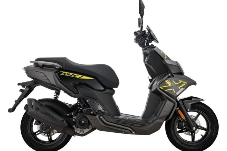 Call us 0141 886 5957 to buy your new Keeway motorcycle.Keeway Fact X 50 takes the concept of a light, edgy scooter with good handling to the next level with its future-thinking styling. Designed to be the ultimate daily driver, this scooter is perfect for anyone looking for a reliable and stylish mode of transportation. Its modern 4-stroke engine delivers easy power on tap while still keeping fuel efficiency in mind for no-frills everyday riding, and the automatic CVT provides a smooth and seamless ride, making it easy to navigate through busy city streets. A tough rugged image is portrayed by the adventure bikes styling and exposed framework. Additionally, the scooter is equipped with a powerful front disc brake, providing excellent stopping power in any situation. The multi-sided LED headlights and taillights give the scooter a wide visual look and enhance visibility in all conditions. Thanks to the long and wide seat, that is designed to be comfortable even on long rides, whether you're riding solo or with a passenger. The scooter's lightweight frame also provides agile handling, making it practical for everyday use. In summary, the Keeway Fact Fact X 125 is a modern and stylish scooter that delivers on performance, fuel efficiency, and comfort, making it a reliable, stylish and fun way to get around town.