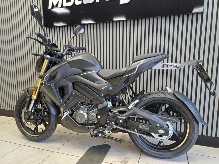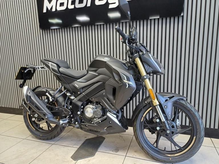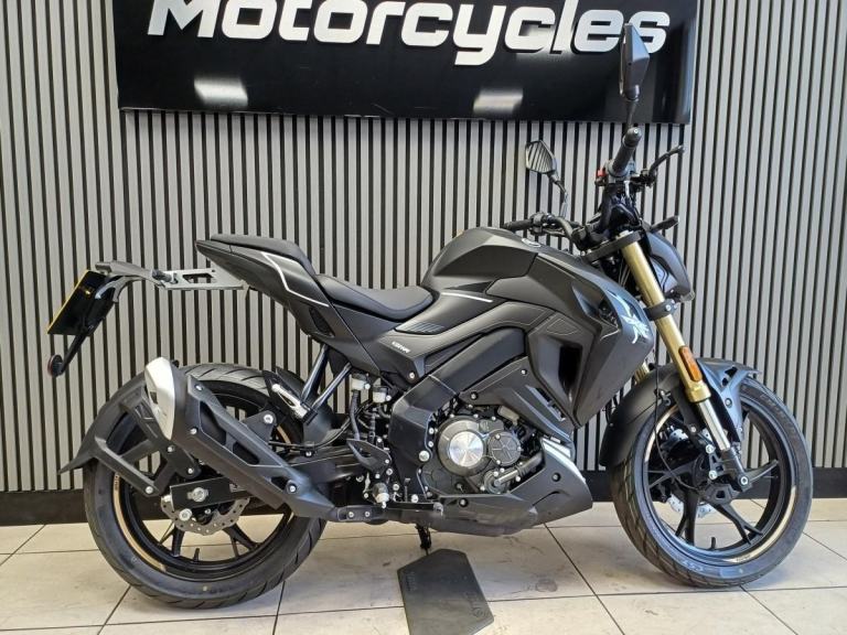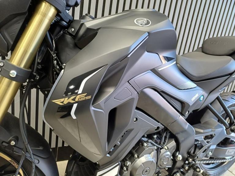 plus otr,,,**£500 off with Pre Registered offer** Chorley Motorcycles your Local Authorised Keeway Dealer .With its edgy and eye-catching look, RKF 125 is the new naked Keeway with a unique, modern personality. RKF125cc is a sleek and extremely dynamic smart bike, designed to provide maximum fun. Its heart is the latest generation Benelli BMT series triple spark engine, new single-cylinder, four-stroke, liquid-cooled 125 cc engine offering outstanding performance. Its maximum power is 9 kW at 9500 rpm, with torque of 10 Nm at 7500 rpm. With the fitment of USD forks as standard, a refined comfort level that feels like it belongs to larger super-sport machines is achieved..