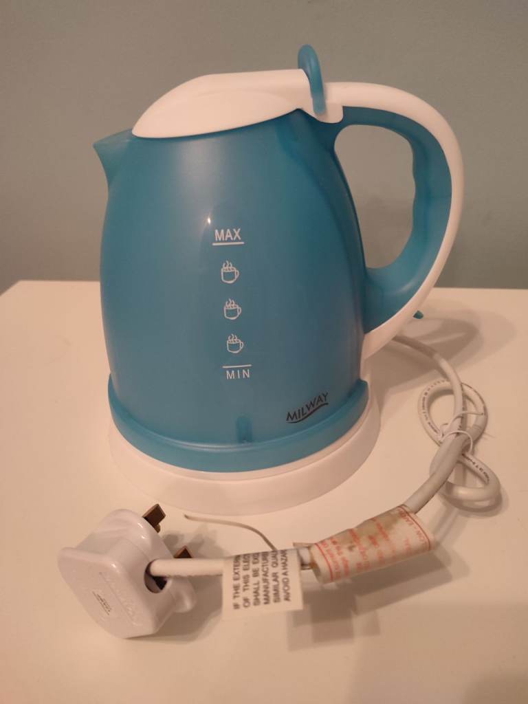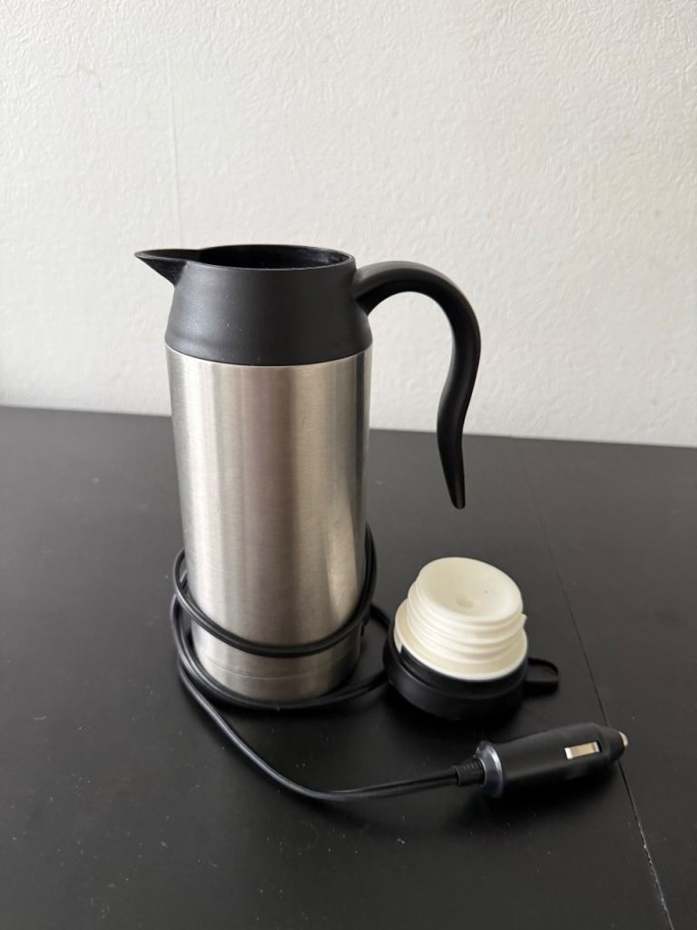 12V electric car kettle / heated travel mug. Plugs into car cigarette lighter. Fully working, good condition.