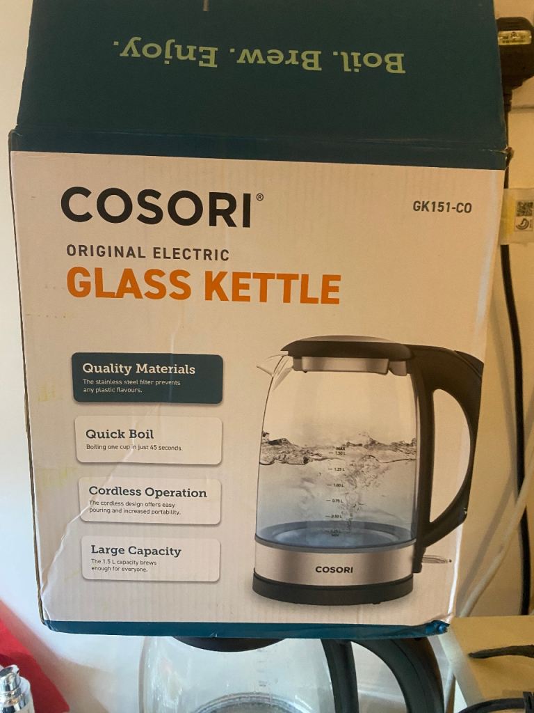 COSORI original electric glass kettle, 1.5L capacity, in very good working condition. Clean, fully functional, and well looked after.