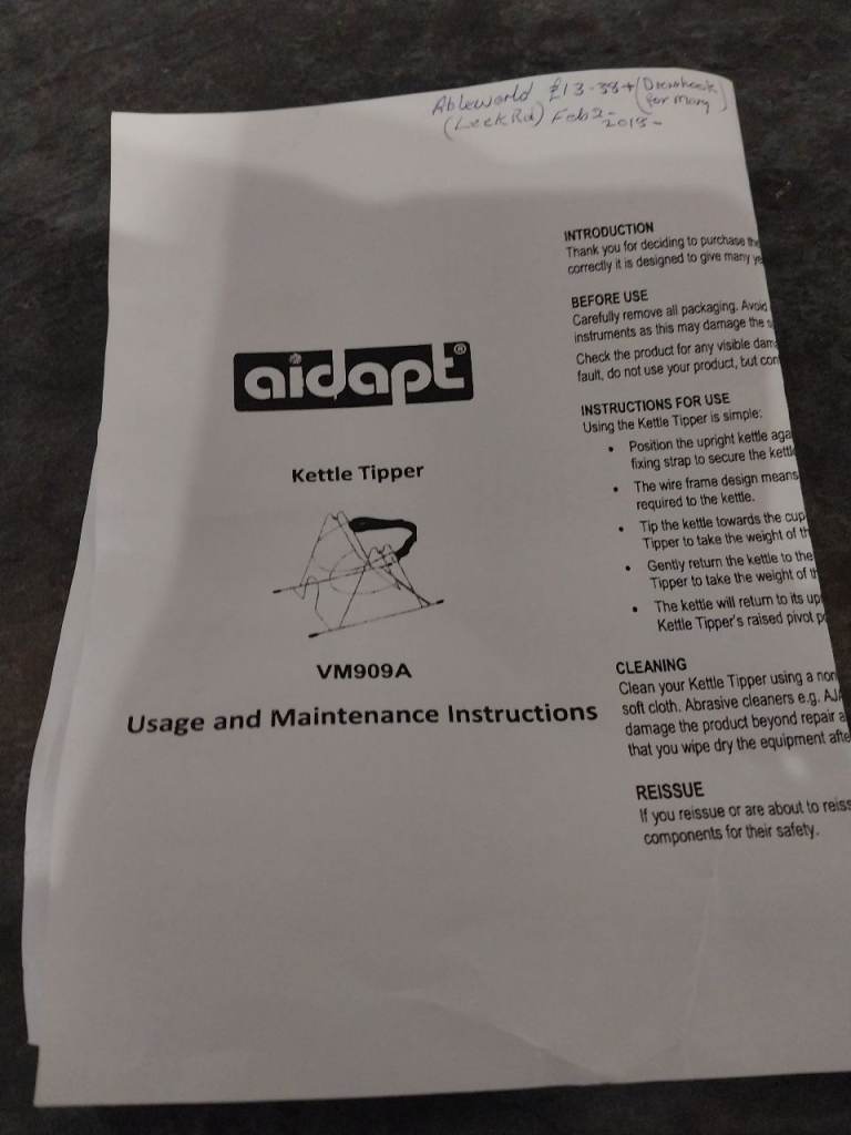 Aidapt Kettle Tipper. New never used. Still in box with instructions. (Kettle not for sale)