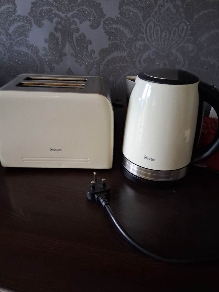 Swan kettle and toaster in cream Good working order Also available (not shown) tea,coffee,sugar in matching cream/silver