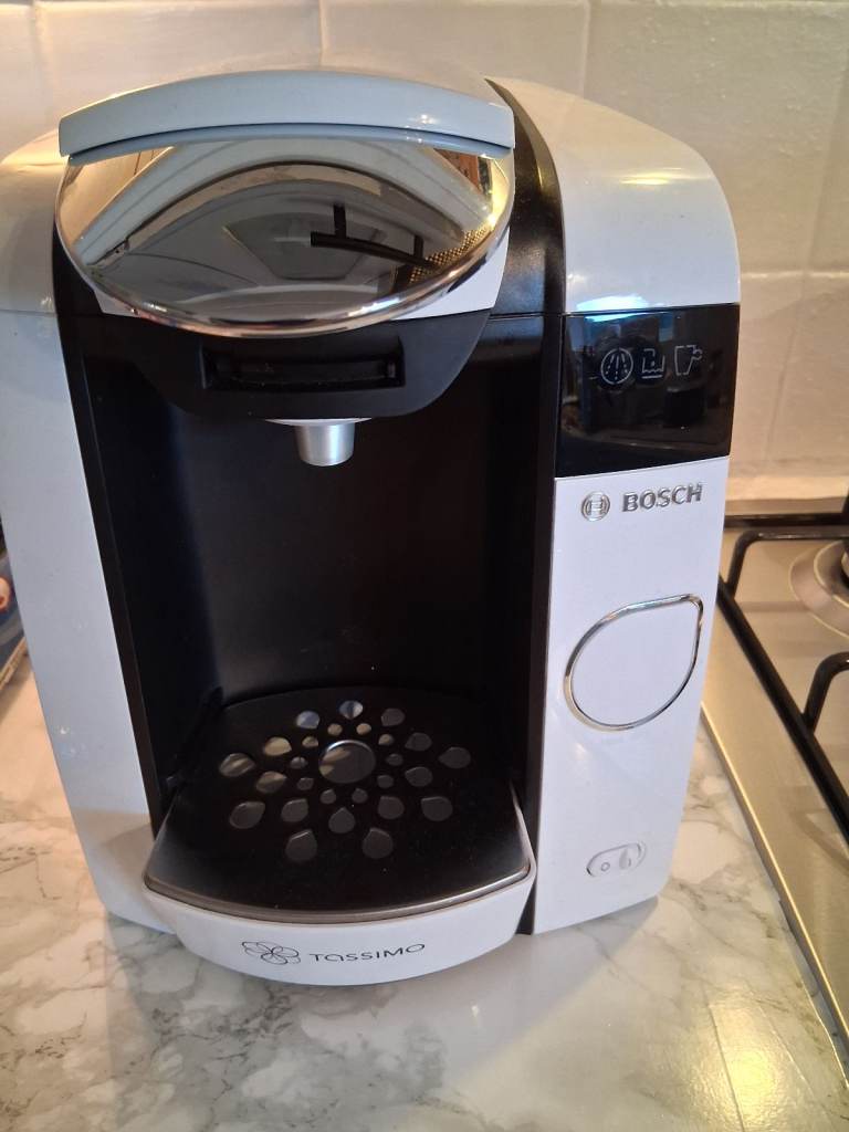 RARE WHITE TASSIMO COFFEE POD MACHINE GOOD SELECTION OF PODS FROM TASSIMO EXCELLENT CONDITON ....£25.....