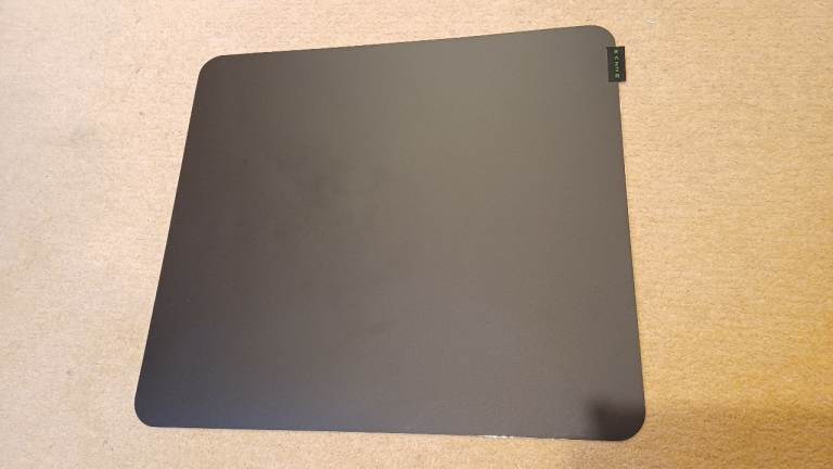 Excellent condition, bought for £25. Not used, as it wasn't the right shape for my desk area. It looks really good quality, and it's thin and very smooth, so will be great for gaming. I removed the plastic backing but put back in place immediately, and it has been kept flat in the original package.