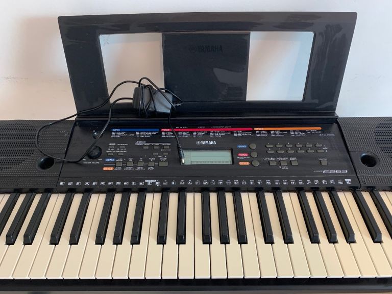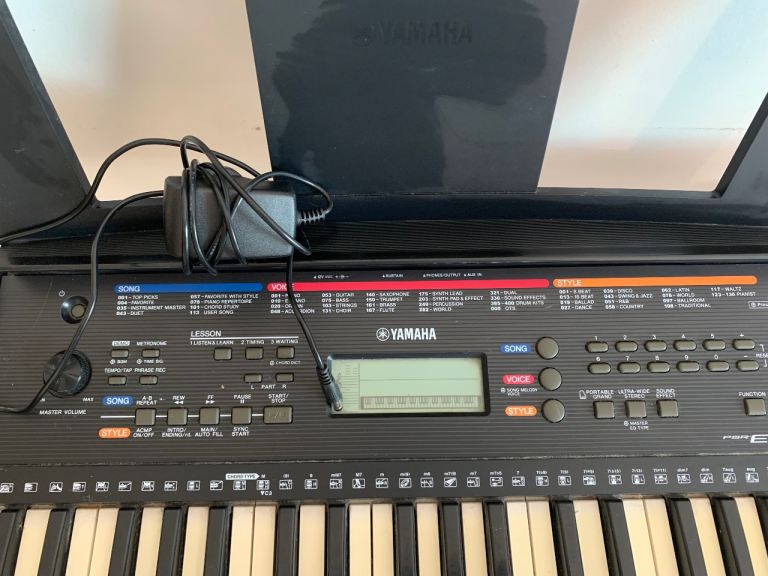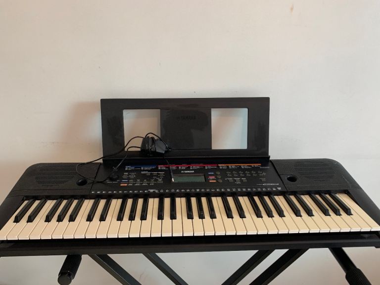 Yamaha digital piano in good working condition. Comes with original book stand, sturdy piano stand, and power cable. All keys function properly and sound is clear. Ideal for beginners or intermediate players.
