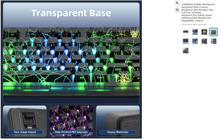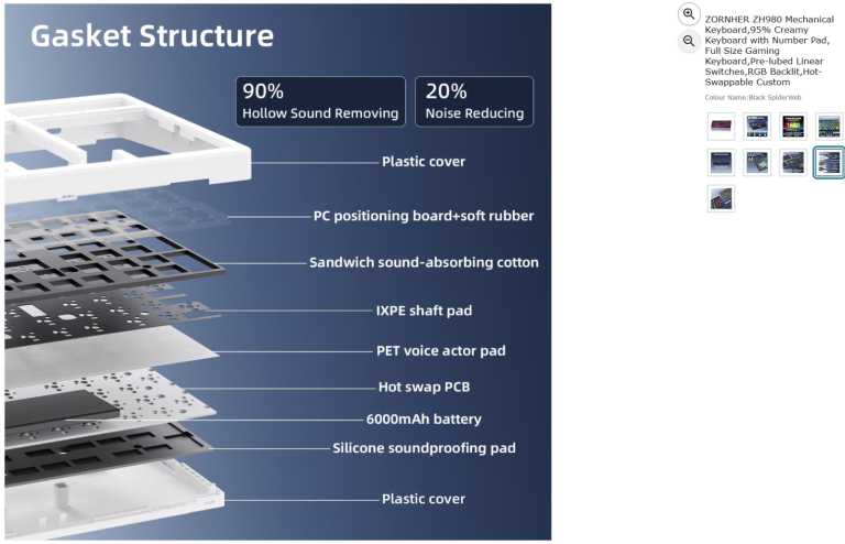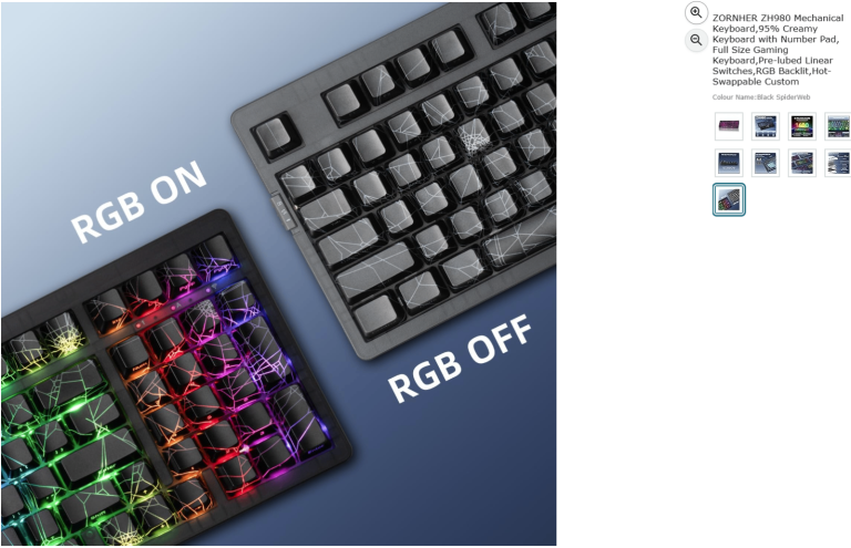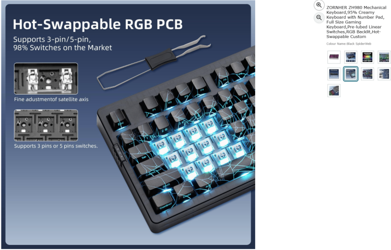 ZORNHER ZH980 Mechanical Keyboard, 95% Creamy Keyboard with Number Pad, Full Size Gaming Keyboard, Pre-lubed Linear Switches, RGB Backlit, Hot-Swappable Custom