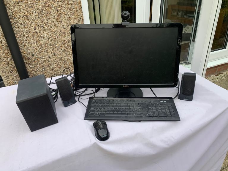 Dell monitoring screen 22” x 13” in size keypad mouse speakers camera and sub and cables all in good used condition no damage. selling whole will not split.