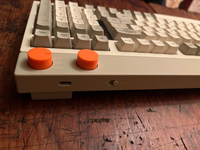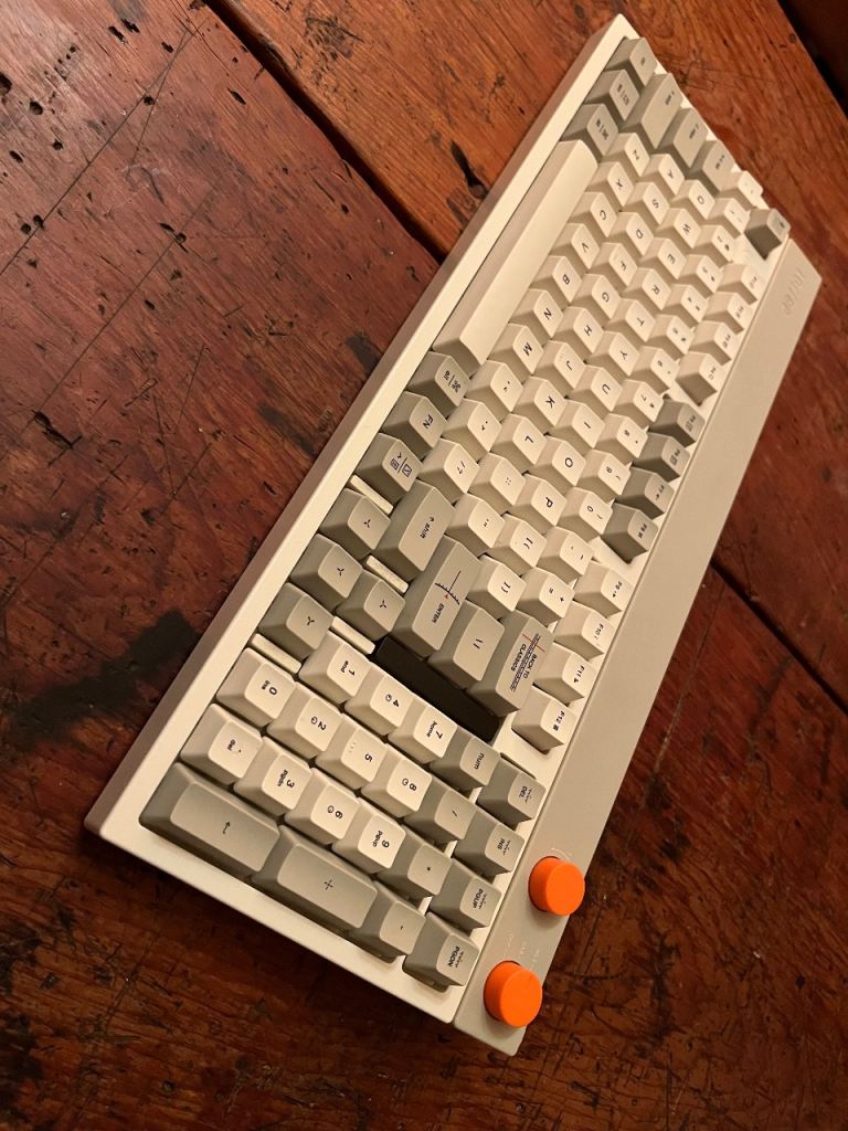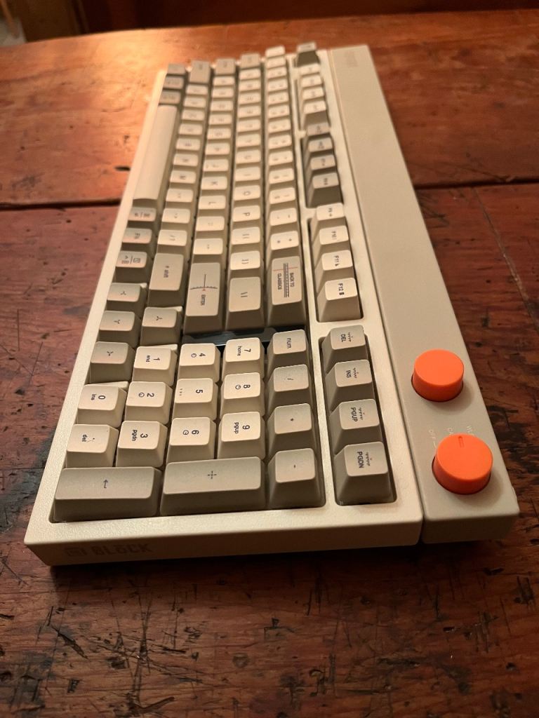 Embracing the principle of minimal design for maximum utility, the Block keyboard features a soft grey base with warm orange highlights. Its block-shaped keycaps a 98-key layout focus on practicality, merging understated elegance with everyday functionality.