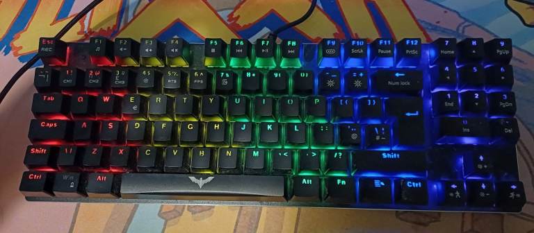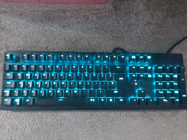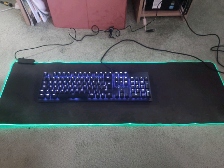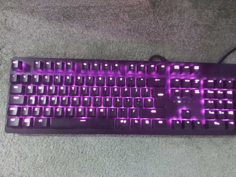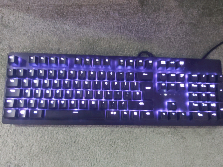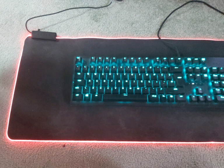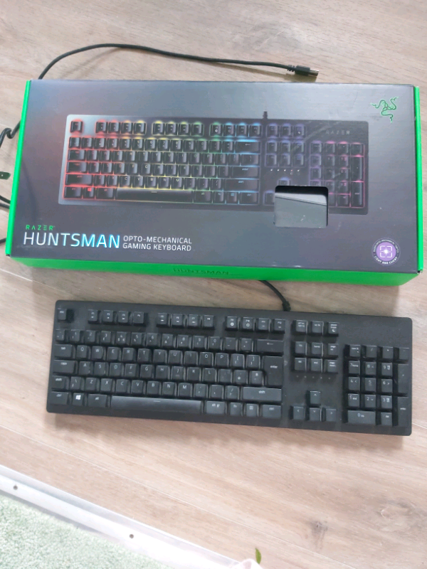 Razer Huntsman full size UK layout Keyboard Purple Clicky Switches is in excellent condition all lights working has macro and media keys. Razer RGB mouse pad large size to fit keyboard and mouse used condition.