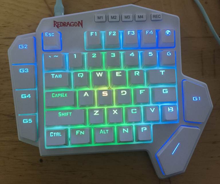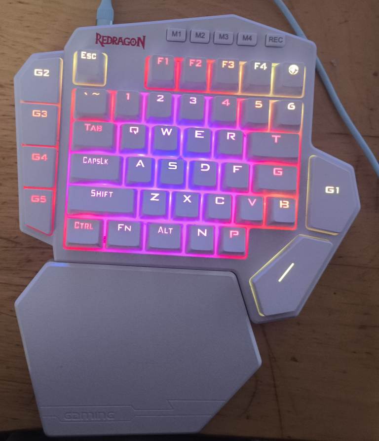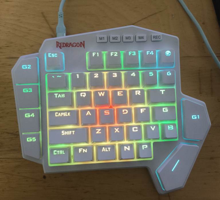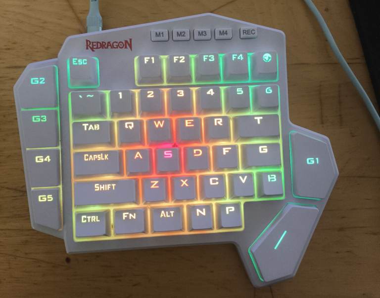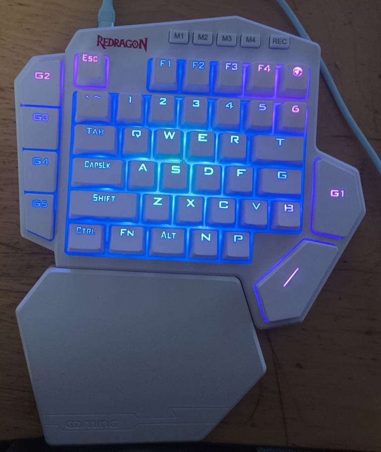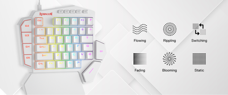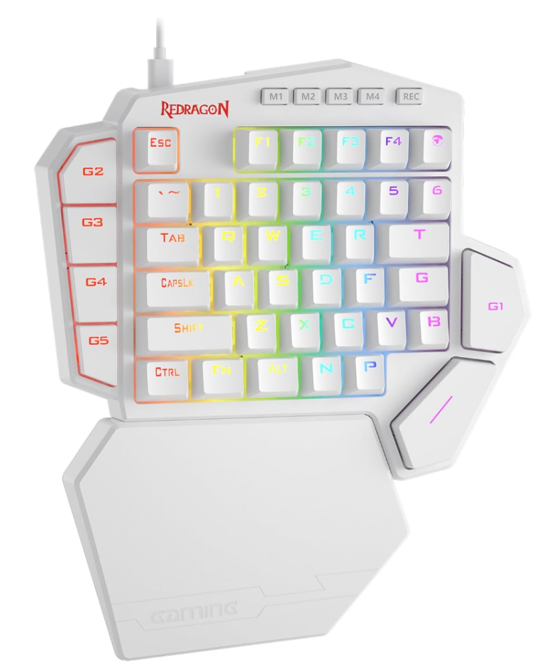 Redragon K585 DITI One-Handed RGB Mechanical Gaming Keyboard, Type-C Professional Gaming Keypad with 7 Onboard Macro Keys, Detachable Wrist Rest, 42 Keys (White, Red Switch)