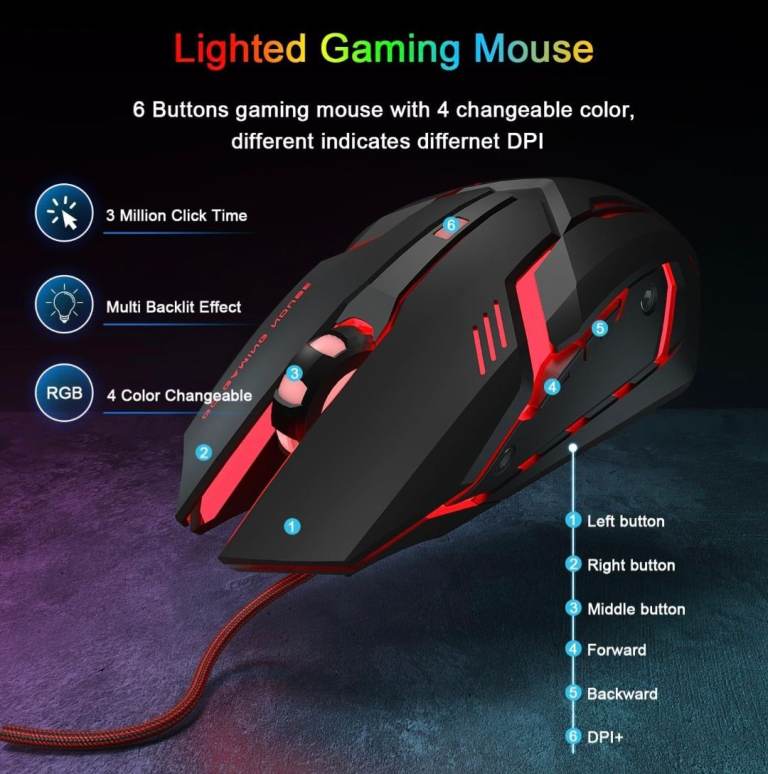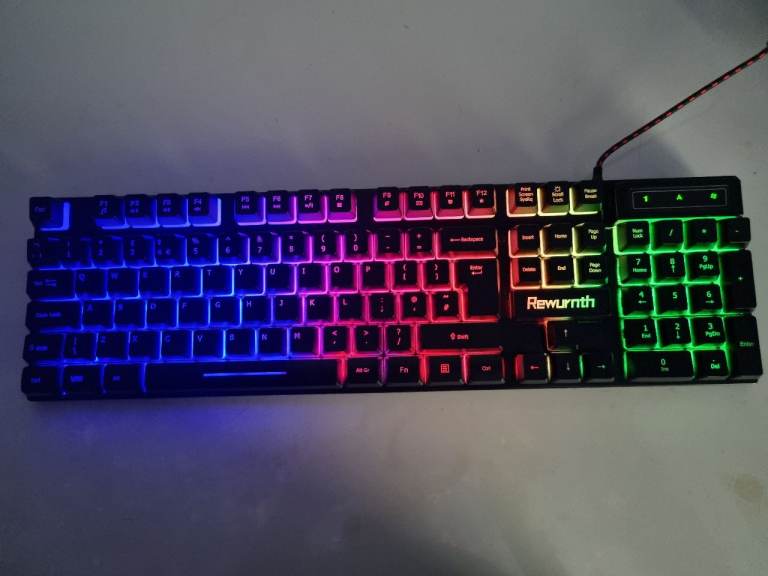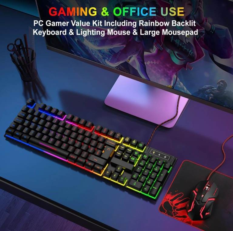 Posting for 6+ yearsRewurnth Rainbow Gaming Keyboard and Mouse Set With Large Mouse Pad