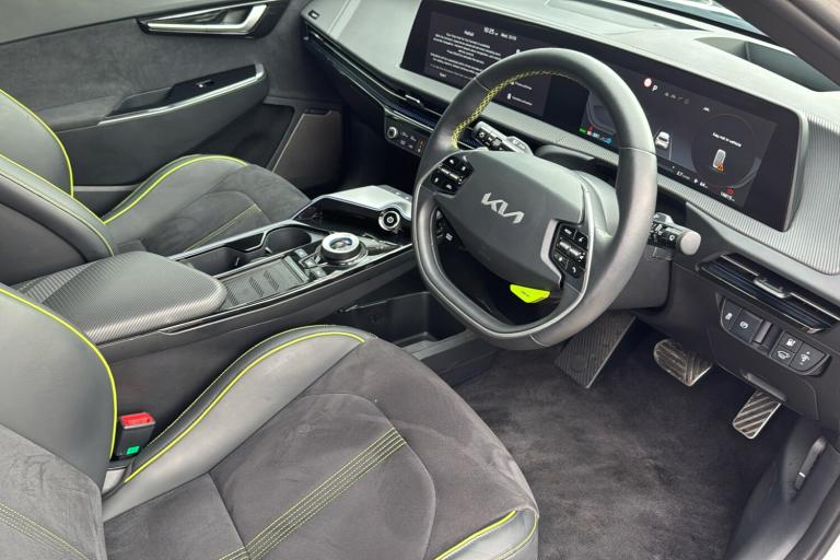 EMG Haverhill is pleased to offer you this stunning Kia EV6 GT Electric Automatic AWD finished in Pearl White premium paint with Suede leather Upholstery and just 16815 miles on the clock! With a complete service record carried out to the 2-year schedule in Mar 25 at 12865 miles the new owner will also benefit from the balance of Kia 7-year warranty until May 2030! As a fully electric four-wheel drive model it boasts a substantial 77.4 kWh battery offering a maximum range of 263 miles all while producing an eye-watering 576 horsepower and 0-62 mph in 3.5 seconds!! Charging is convenient with a full charge at home taking approximately 12 hours and 30 minutes on a 7kW charger while rapid public charging can take you from empty to 80% in just 20 minutes. Furthermore the EV6 offers generous boot space making it a versatile choice for both daily commutes and longer trips. The GT model is visually sporty and stylish with unique GT body-kit Neon Brake Callipers features a host of standard equipment for your comfort and driving needs consisting of: Satellite Navigation Apple Car Play and Android Auto Connection Dual Climate Control Smart Cruise Control Front and Rear Park Sensors Park Assist 360 Camera Heated Front Seats and Steering Dusk Sensing LED Headlights Rain Sensing Front Wipers Keyless Entry Heads Up Display Heat Pump DAB Radio Sport Drive Mode USB Port Rear Seat Isofix and so much more! At EMG Haverhill every used car completes a vigorous multi-point point mechanical inspection and road test by our fully qualified technicians before being handed over. For further details please call our friendly sales team on 01440 840350 to arrange a test drive a personalized video of this exact vehicle part exchange valuation or to answer any other questions you may have. EMG Haverhill is a family-run business supplying new and used vehicles across the UK for over 50 Years and look forward to offering you a wonderful customer experience from end to end of your purchase journey! COMPETITIVE PCP FINANCE PLANS AVAILABLE - Ask for your quote today!